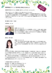 平素より当クリニックにご来院いただき、誠にありがとうございます。